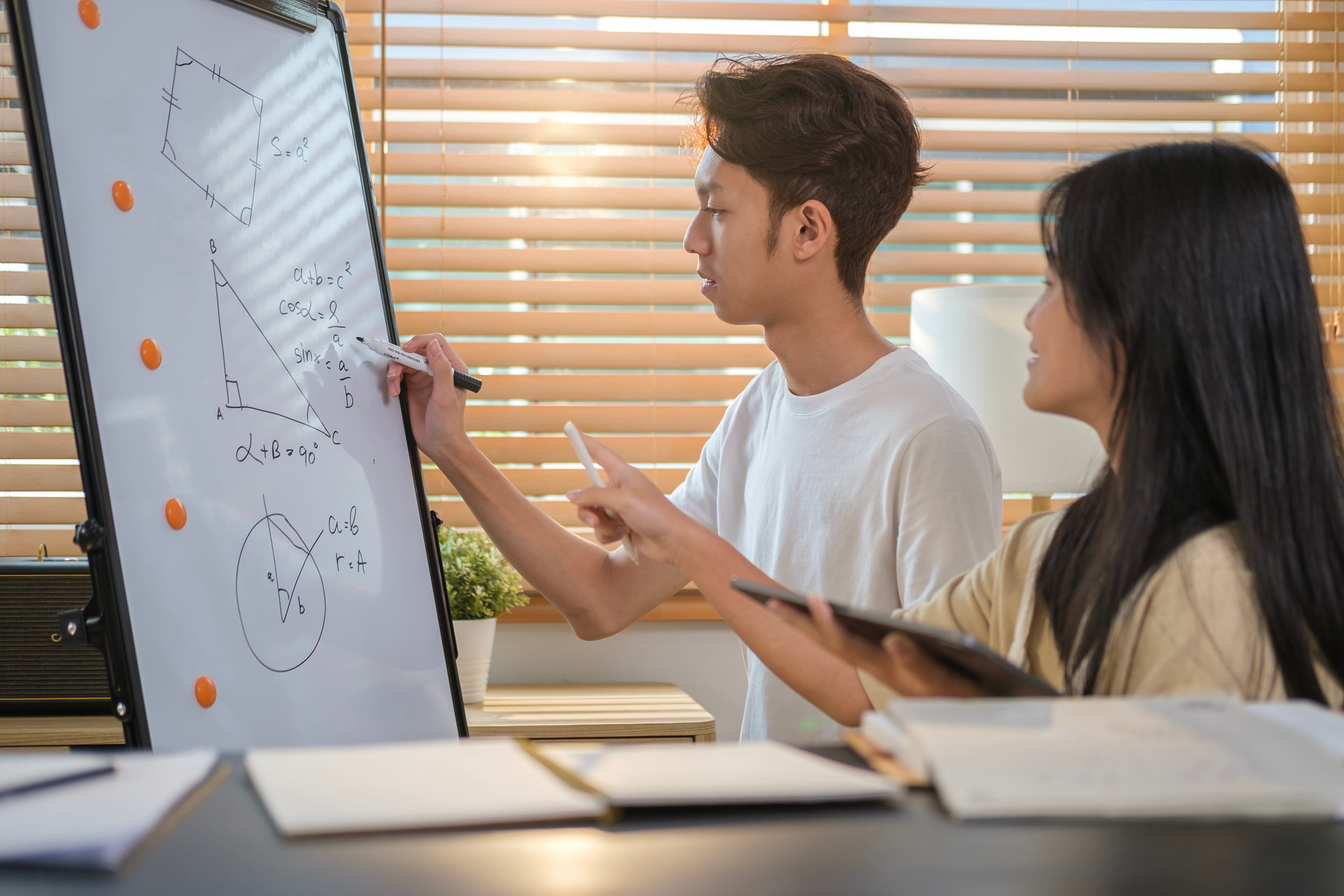 Our geometry tutoring program helps students build confidence with shapes, theorems, proofs, formulas, and spatial reasoning through clear and supportive instruction. Geometry can be difficult for students who struggle with visualizing concepts or understanding how different rules connect, so our tutors break lessons into manageable parts that improve understanding and reduce frustration. We help students with classwork, homework, quizzes, and tests while strengthening the reasoning skills needed to solve problems accurately and explain their thinking. Through personalized support and steady practice, students can build both stronger performance and a more positive relationship with math.